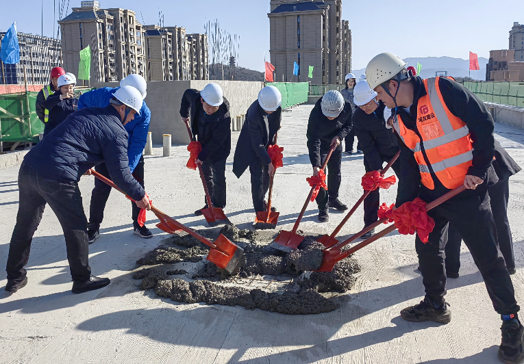 2025年1月15日上午,隨著最后一方混凝土澆筑完成,城發(fā)·新時代(二期)項目2#3#4#主樓結(jié)構(gòu)順利封頂,標(biāo)志著項目建設(shè)加速進(jìn)入新階段。城發(fā)建工集團(tuán)黨總支書記、董事長呂紹成、城發(fā)建工集團(tuán)黨總支委員、副總經(jīng)理洪登峰、城發(fā)建工集團(tuán)副總經(jīng)理崔巍出席活動,城發(fā)建工集團(tuán)一分公司、城發(fā)商砼公司相關(guān)負(fù)責(zé)同志,項目建設(shè)單位、監(jiān)理單位、設(shè)計單位、地勘檢測單位、施工單位等參建各方代表30余人參加項目主體結(jié)構(gòu)封頂儀式。項目經(jīng)理胡國權(quán)主持封頂儀式。